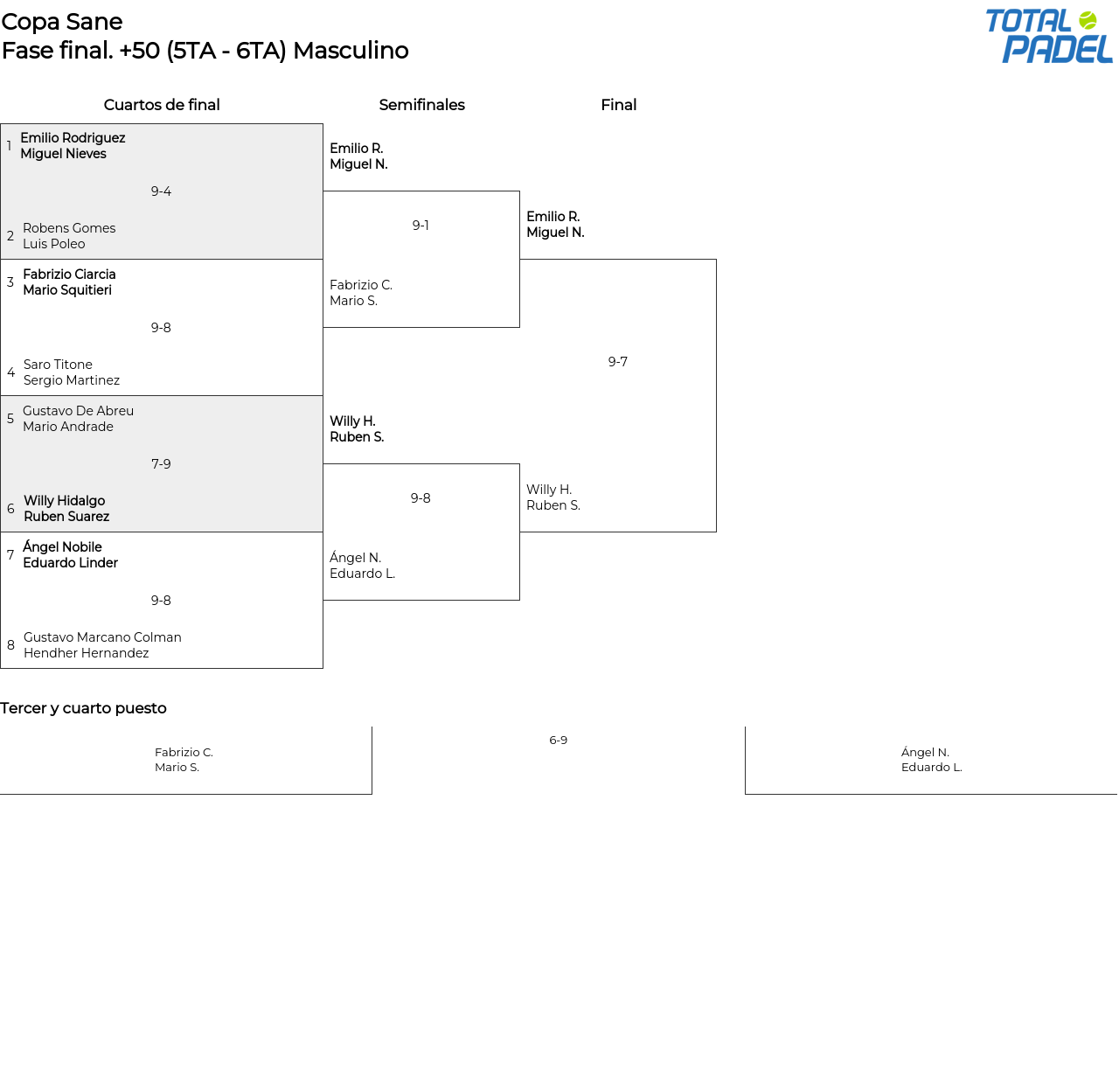 Cuadro principal +50 (5TA - 6TA) Masculino
